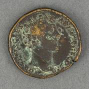 Bronzen munt: Romeinse sestertius uit de tijd van Marcus Aurelius, gewicht 24 gram, Ø 3 cm