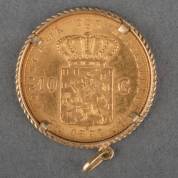 14kt gouden hanger met gouden tientje, 1897, gewicht 8,3 gram,