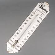 Emaille buitenthermometer met reclameopschrift van oliefabriek 'Orion', Zaandam -gebruikssporen-, 85 x 20 cm