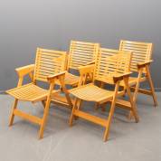 Serie van vier beuken klapstoelen, model Rex, ontwerp Niko Kralj, uitvoering Impakta Les -gebruikssporen, restauraties, speling in verbindingen-, 82 x 57 x 60 cm