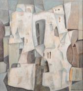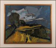 Joannes Henricus 'Jan' Tullemans (1924-2011), geabstraheerd weidelandschap met hooischelven, olieverf op doek, gesigneerd, 61 x 73 cm