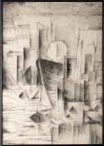 Hollandse School: geabstraheerd havengezicht, tekening, gemonogrammeerd LLL en gedateerd '62, 58 x 41 cm