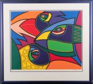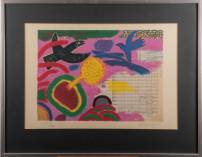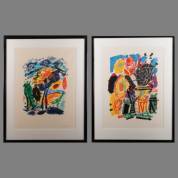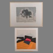 Joseph Cals (1949), 'Hommage aan Graham Sutherland', zeefdruk 76/190, gesigneerd in potlood, en Gijs Keijzer (1933), abstracte compositie in kleur, zeefdruk 14/104, gesigneerd in potlood