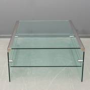 Vierkante glazen salontafel met verchroomde hoeken en etagère, ontwerp Pierangelo Gallotti, uitvoering Gallotti & Radice, Italië, jaren '70-'80, gemerkt -lichte gebruikssporen-, 43 x 81 x 79 cm