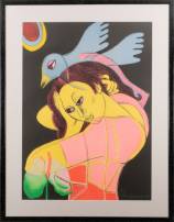 Corneille (1922-2010), vrouw met blauwe vogel, litho 71/150, gesigneerd en gedateerd '90, 81 x 58.5 cm