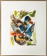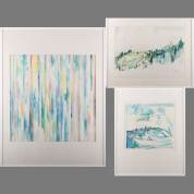 Govert Heikoop (1951-2007), drie werken: geabstraheerde voorstellingen, acryl op papier, één werk gesigneerd