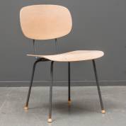 Stoel met multiplex zitting en rugleuning op buisframe onderstel, model 116, ontwerp Wim Rietveld, uitvoering Gispen -zitting en rugleuning overgebeitst, lichte corrosie op poten-, 77 x 47 x 52 cm