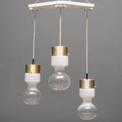 Drielichts deels opaline hanglamp met messingkleurig armatuur, model B-1062, uitvoering RAAK Amsterdam, circa 1965, 105 x 65 x 40 cm