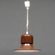 Bruingelakte metalen hanglamp, model Campana, ontwerp Joe Colombo, uitvoering Stilnovo, Italië, jaren '60, 78 x Ø 42 cm