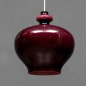 Paars glazen kelkvormige hanglamp, uitvoering Holmegaard, Zweden, circa 1950 -armatuur niet origineel-, 35 x Ø 30 cm
