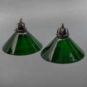 Paar groen glazen hanglampenkappen, 18 x Ø 25 cm