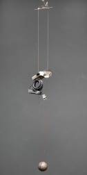 Hanglamp bestaande uit spot aan twee draden, met kogelvormige metalen gewicht, model Abollo, ontwerp C.P. & P.R. Associati, uitvoering Artemide, Italië, 173 x 23 x 17 cm
