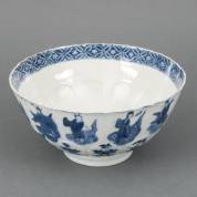 Chinees porseleinen kom met blauw-wit decor van onsterfelijken en bloemen, Chenghua gemerkt, Kangxi -geheel gerestaureerd-, 10 x Ø 20 cm