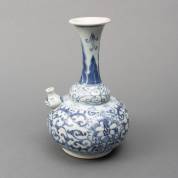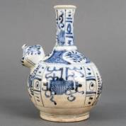Chinees porseleinen ghendi met blauw-wit arabeskdecor, 19e eeuw -hals met restauratie en haarlijnen-, 23 x Ø 14 cm