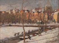 Henk van Leeuwen (1890-1972), winters stadsgezicht, olieverf op doek, gesigneerd -gedoubleerd-, 28 x 38,5 cm