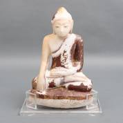 Albasten Boeddha, de handen in bhumisparsha mudra, met resten van vergulding en polychromie, Birma, vermoedelijk circa 1800, 43 x 28 x 16 cm