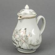 Chinees porseleinen encre de Chine dekselkannetje met decor van Cupido bij verliefd stel, Qianlong -schilfer van handvat-, 12 cm