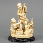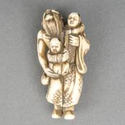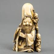 Potvisivoren netsuke: Jurôjin met twee karako, Japan, gesigneerd, tweede helft 19e eeuw, 5,75 cm