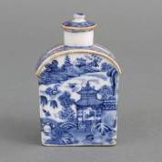 Chinees porseleinen theebus met blauw-wit rivierlandschapsdecor, Qianlong -haarlijn in hals-, 13 x 8,5 x 3,5 cm