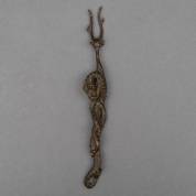 Chinese bronzen theedekselvork in de vorm van een draak, L 22 cm
