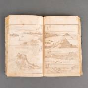 Katsushika Hokusai (1760-1849), e-hon: 'Hokusai manga', met 29 dubbele pagina's voorzien van houtblokdrukken van landschappen, donkere sumi, lichte sumi en lichte vermiljoen op papier, volume 7 (van de 15), 1817 -lichte defecten en enkele restauraties-, 22,5 x 16 cm