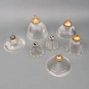 Zeven persglazen hanglampenkappen, Holophane-stijl, 26 x Ø 23 cm