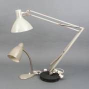 Grijsgelakte verstelbare stalen bureaulamp, naar Anglepoise model, uitvoering Hala, Zeist, circa 1950, daarbij: grijsgelakte stalen zwanenhals bureaulamp, uitvoering Hala, Zeist, circa 1960