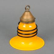 Kelkvormig oranje glazen hanglampje, door zwarte spiraal omringd, 17 x Ø 15,5 cm