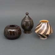 Hans Wagner 1949-1972, zwartgeglazuurde keramiek vaas, gesigneerd, geglazuurde keramiek vaas met diagonale zwarte strepen, gesigneerd, en bruingeglazuurde keramiek vaas, niet gesigneerd, 22 x Ø 13 cm