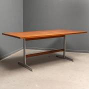 Teakgefineerde tafel op verchroomd stalen onderstel, jaren '60 -gebruikssporen-, 72 x 180 x 90 cm