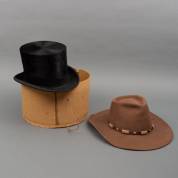 Bruine vilten hoed, model Tumbleweed, uitvoering Bailey, maat 57, daarbij: hoge hoed, 13 x Ø 36 cm