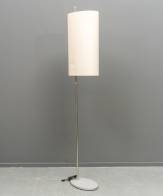Staande lamp met beige stoffen kap op verchroomd stalen basement, circa 1970, 158 x Ø 55 cm