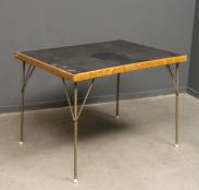 Tafel op stalen onderstel en met linofelt blad, de poten voorzien van schuine verstevigingen, model 530, ontwerp Wim Rietveld en André Cordemeyer, uitvoering Gispen, ontwerp uit 1954 -gebruikssporen-, 72 x 100 x 75 cm