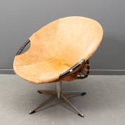 Cognackleurige suède loungestoel op draaibaar stalen onderstel, model Balloon, uitvoering Lusch en Co., Duitsland, circa 1965 -gebruikssporen-, 70 x 71 x 70 cm