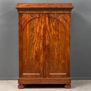 Mahoniegefineerde tweedeurs linnenkast, binnenin vijf planken en één lade, biedermeier, 188 x 126 x 52 cm