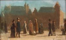 Cornelis Albertus J. Schermer (1824-1915), verso getiteld 'Promenade', marouflé, rechtsonder stempel: Atelier C. Schermer, 12 x 20 cm