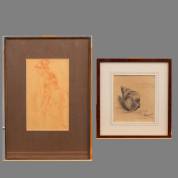 Twee tekeningen: ballerina, roodkrijttekening, gemonogrammeerd FP, en mogelijk Joseph Lesage (1884-1918), schelp, potloodtekening, gesigneerd, 22 x 13 cm