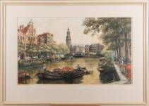 Cornelis Brandenburg (1883-1954), 'Bloemenmarkt', kleurenlitho, gesigneerd in potlood, 42 x 70 cm