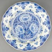 Aardewerk wandbord met floraal decor, De Porceleyne Fles, Delft, Ø 36 cm