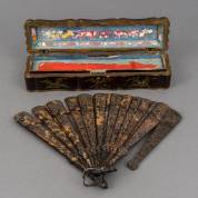 Lakwerk doosje, waarin een schildpad waaier met gesneden decor, China, 19e eeuw -waaier defect-, 23 cm