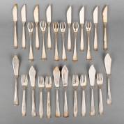 Zespersoons verzilverd visbestek, Haags lof, Gero 90, daarbij: zespersoons verzilverd visbestek en twee extra vismessen, Gero 90