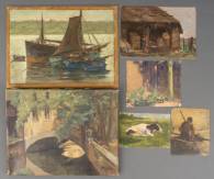 Petrus van Gils (1879-1953), zes werken: landschappen, alle olieverf op doek, vijf gesigneerd, 28 x 36 cm