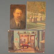 Petrus van Gils (1879-1953), drie werken: zelfportret, interieur -defecten-, en 'Door 't venster van thuis', alle olieverf op doek, twee gesigneerd