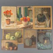 Petrus van Gils (1879-1953), zeven werken: stillevens, olieverf op doek, zes gesigneerd -verfverlies-, 31 x 24,5 cm