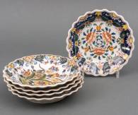 Serie van vijf aardewerk wandbordjes met polychroom floraal decor, uitvoering Tichelaar, Makkum, Ø 20 cm