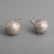 Twee zilverkleurige metalen pomanders met opengewerkt decor, China, tweede helft 19e eeuw, Ø 6 cm