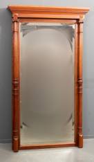 Mahonie haardspiegel, de facetgeslepen spiegel geflankeerd door Ionische zuilen, modern -enkele chips van de lijst, ongelakte houtplaat bevestigd aan bovenzijde-, 190 x 110 x 22 cm