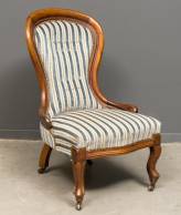 Mahonie breistoel met gestreepte velours bekleding -bekleding sleets-, 94 x 61 x 70 cm