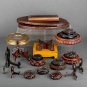 Diverse Chinese houten basementen, en twee palissander dienblaadjes