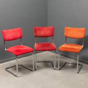 Drie buisframe stoelen 'De Purmer', met oranjerode Manchester ribstof, uitvoering Dykmeyer -stof een beetje sleets-, 82 x 43 x 52 cm